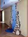 Интересное дизайнерское решение - душ в виде водопада. Постоянное напоминание о летнем отдыхе. Сложное нагромаждение дикого известняка с изумительной красоты каменной мозаикой.